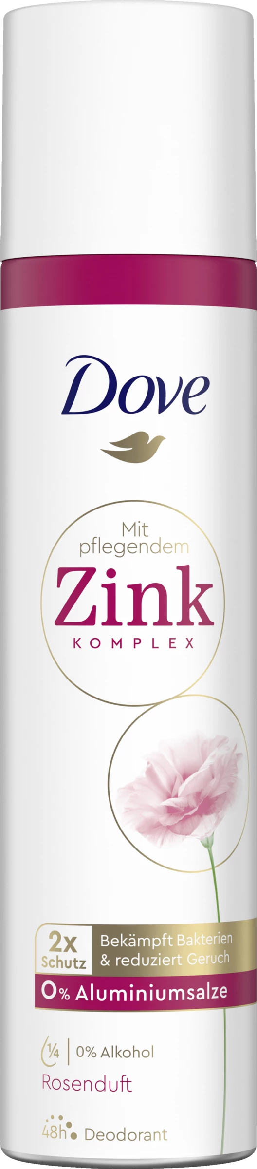 Das Dove Deodorant Spray mit Rosenduft und pflegendem Zink-Komplex bietet 48 Stunden Schutz und verleiht den ganzen Tag ein frisches und sauberes Gefühl. Die Formel mit 1/4 Pflegecreme ist sanft zur Haut und macht die zarte Achselhaut glatt und geschmeidig. Mit dem einzigartig pflegenden Zink-Komplex schützt das Dove Deodorant Spray vor Körpergeruch auf zwei Arten: Der antibakterielle Zink-Komplex reduziert Geruch und bekämpft zugleich geruchsverursachende Bakterien.