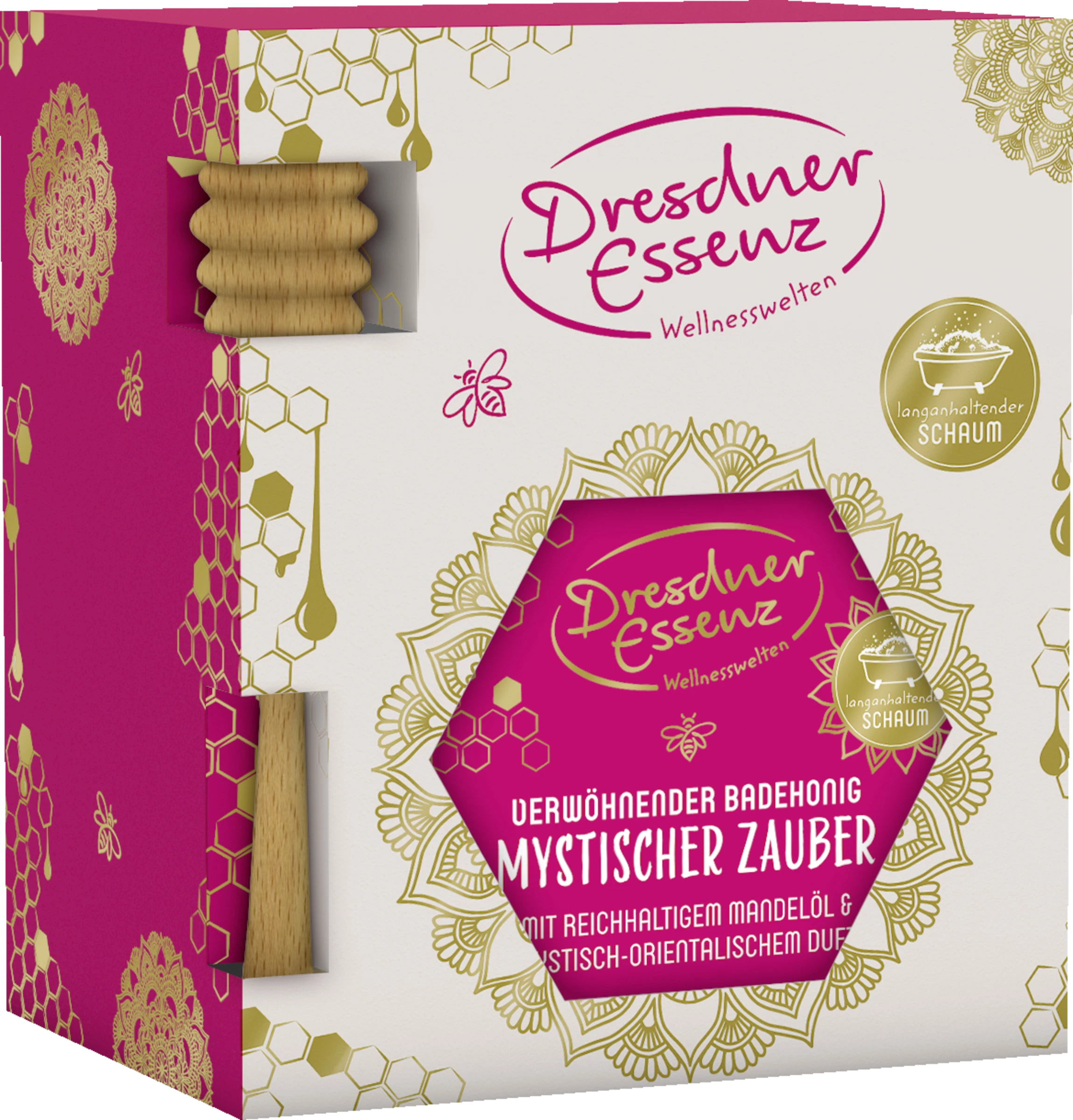 Schwelgen Sie mit dem Badehonig MYSTISCHER ZAUBER in purem Luxus. Die reichhaltig-cremige Textur macht das Baden zu einem ganz besonderen Erlebnis. Eine hochwertige Rezeptur mit reichhaltigem Mandelöl, pflegendem Honig und Weizenprotein verleiht ein gepflegtes Hautgefühl. Der sinnliche, orientalisch anmutende Duft wirkt beruhigend und harmonisierend auf Körper und Geist.