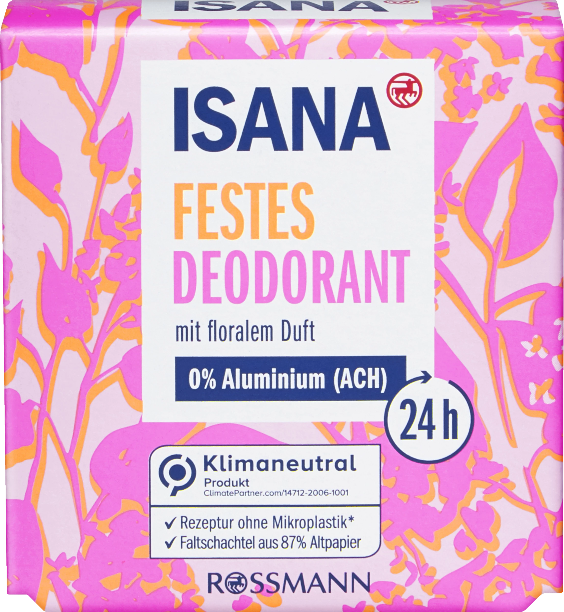 Das ISANA FESTE DEODORANT mit der 24h-Aktiv-Formel enthält einen natürlich wirkenden Inhaltsstoff. Dieser hemmt selektiv Bakterien, die für die Zersetzung von frischem, nicht riechendem Schweiß verantwortlich sind und beugt auf diese Weise zuverlässig der Geruchsbildung vor. Die enthaltene Sheabutter und Candelillawachs pflegen zusätzlich die Haut. Ohne Aluminium (ACH).Ohne Alkohol (Ethanol).
