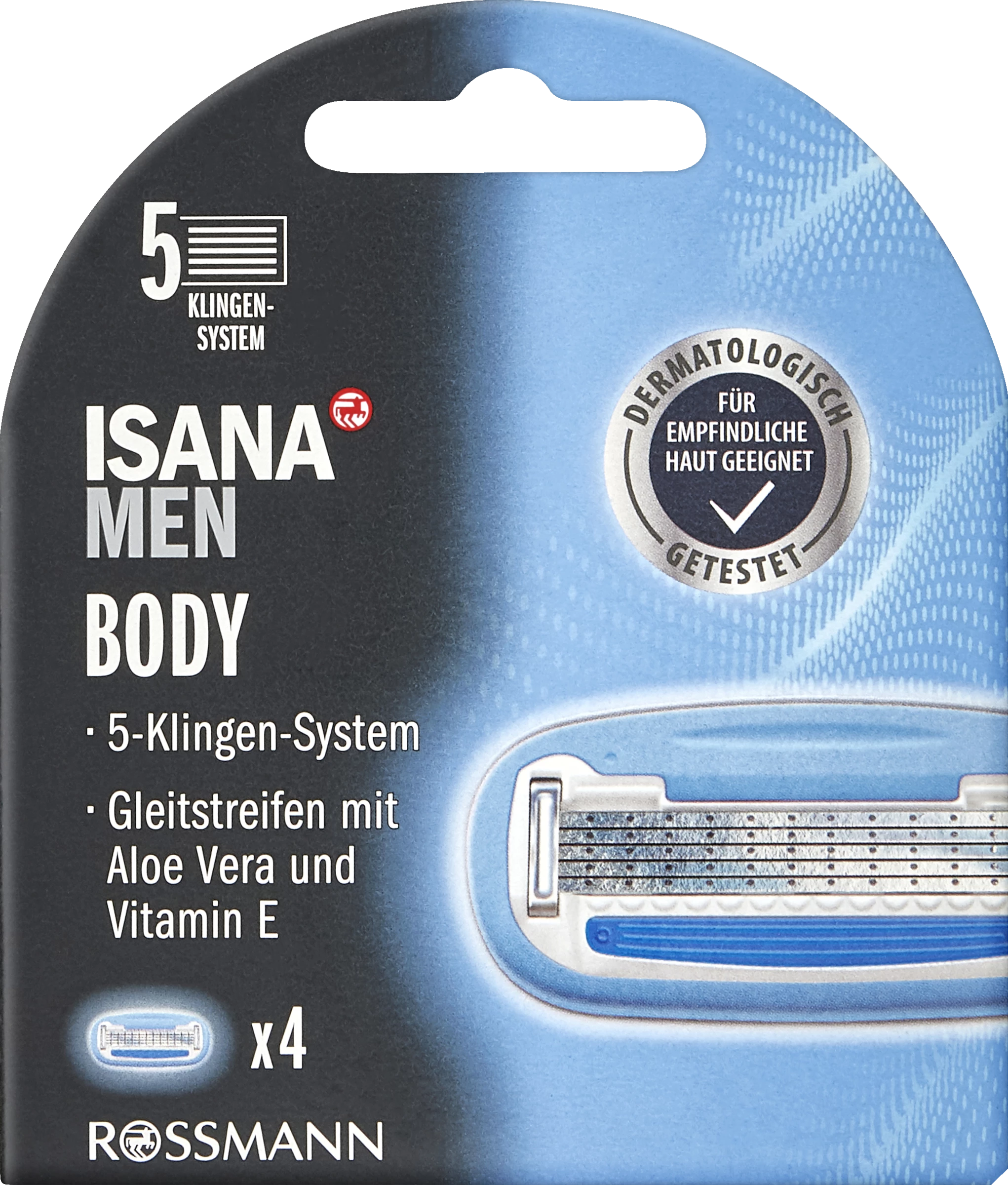 ISANA MEN BODYRASIERER – für eine schonende und gründliche Körperrasur. Der abgerundete Klingenkopf mit flexiblem Schwingkopf passt sich den Körperkonturen optimal an.