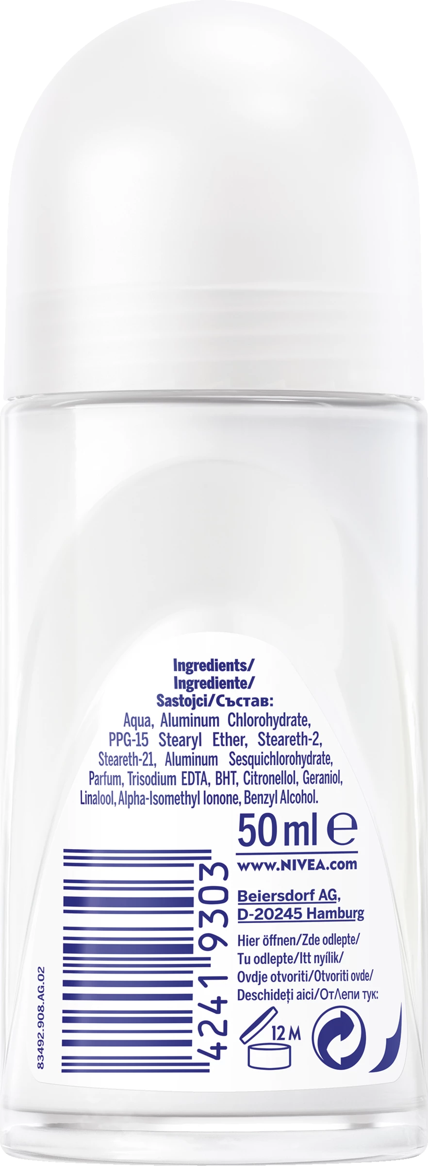 Aqua, Aluminum Chlorohydrate, PPG-15 Stearyl Ether, Steareth-2, Steareth-21, Aluminum Sesquichlorohydrate, Parfum, Trisodium EDTA, BHT, Citronellol, Geraniol, Linalool, Alpha-Isomethyl Ionone, Benzyl Alcohol