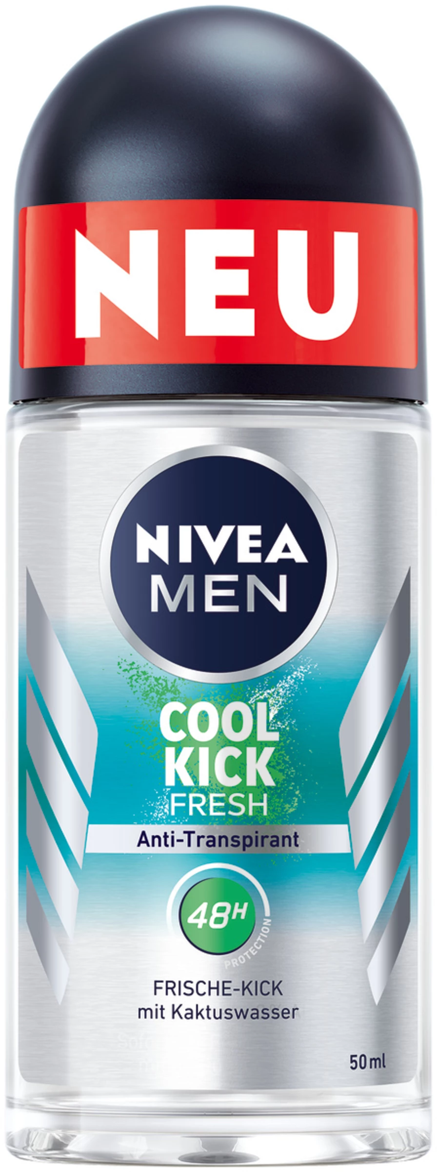 NIVEA MEN Deodorant Cool Kick Fresh Roller beinhaltet eine leichte Formel mit Kaktuswasser und kombiniert damit einen einzigartigen sofortigen Frische-Kick mit dem bewährten, zuverlässigen NIVEA Anti-Transpirant Schutz gegen Achselnässe und Körpergeruch für 48 Stunden – wie eine frische Dusche an einem heißen Tag.