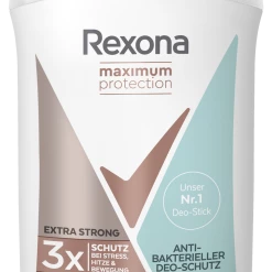 Mit Rexona Maximum Protection Anti-Transpirant Stick Antibakterieller Deo-Schutz braucht man sich um besonders starkes Schwitzen keine Gedanken mehr zu machen. Das Anti-Transpirant ist besonders effektiv und zugleich sanft genug für den täglichen Gebrauch. Es schützt effektiv mit der 3x Schutzformel bei Stress, Hitze und Bewegung. Dabei verleiht es einen frischen und dezenten Duft. Die Hautverträglichkeit wurde dermatologisch getestet und der Deostick enthält keinen Alkohol.