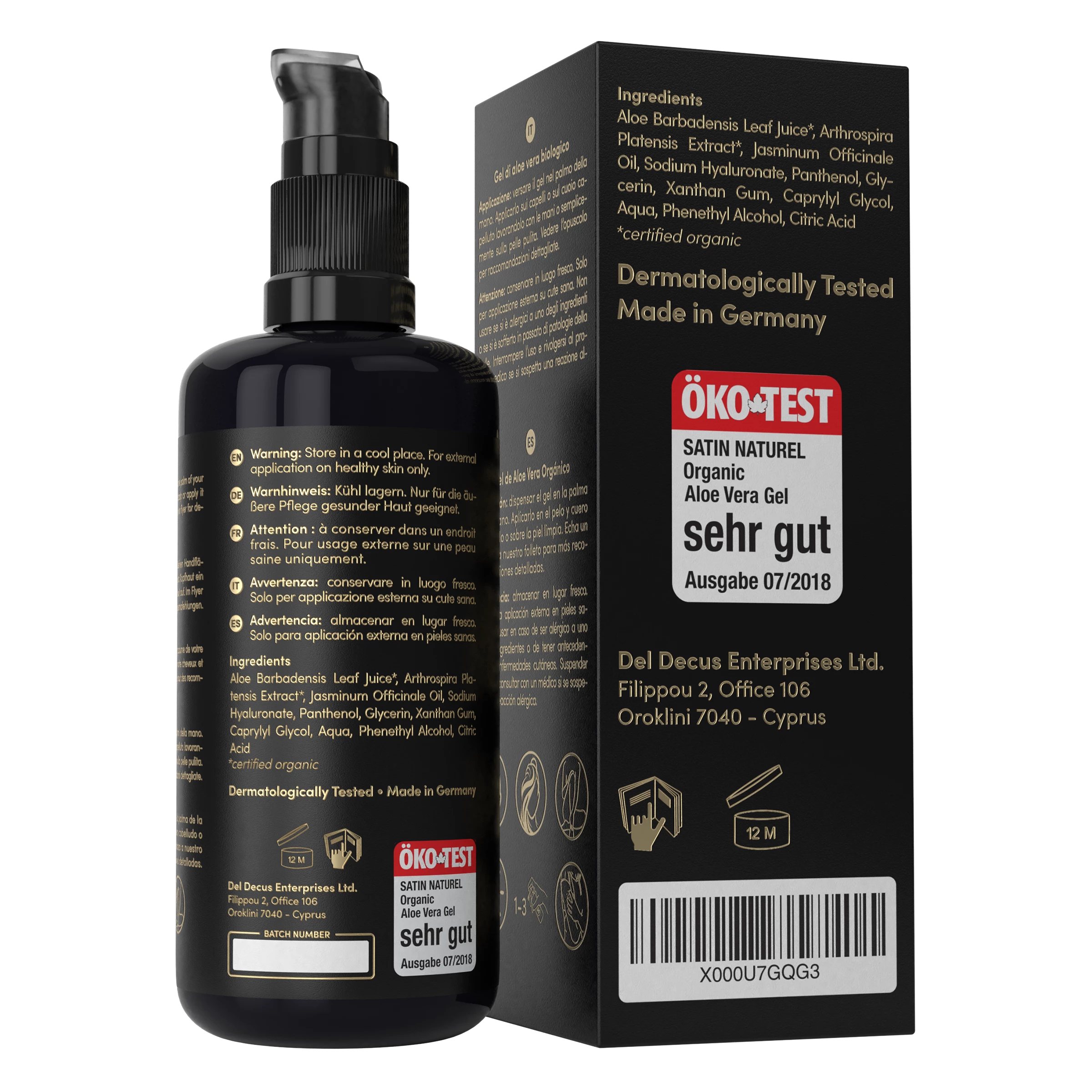 Superpflanze Bio Aloe Vera & Öko-Test Sieger 2020 – dieses beruhigende Gel mit 97,5 % reinem Bio Aloe Vera Saft, Hyaluronsäure und 1.200 mg / l Aloverose versorgt Deine Haut mit langanhaltender Feuchtigkeit.